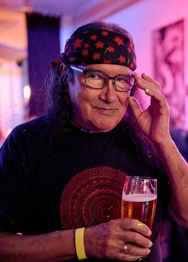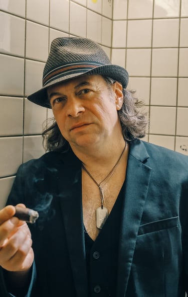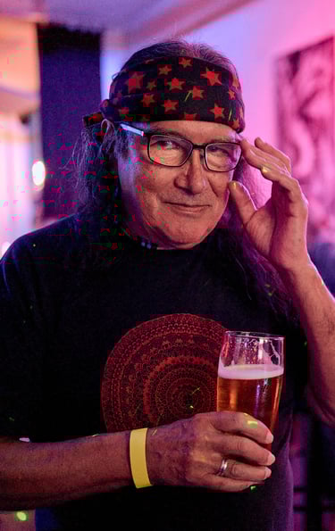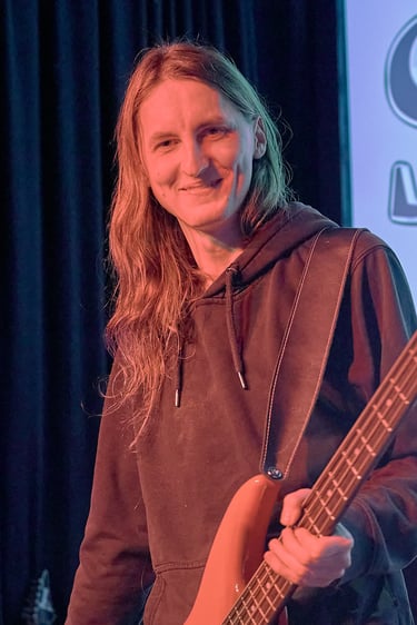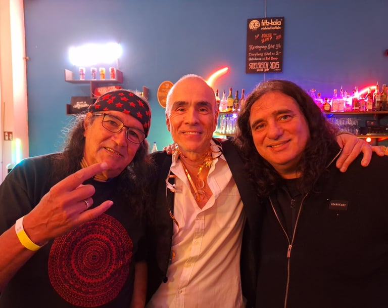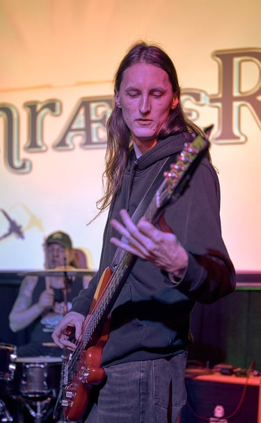 Andy Bulgaropulos – Sänger und Gitarrist, aufgewachsen in Frankfurt/M., hat sich seine musikalischen Sporen bei TANKARD verdient. Er siedelte 1998 nach Berlin über, arbeitete als SciFi-Autor sowie Texter und konzentriert sich seit 2023 erneut auf das Schreiben von Songs & deren Lyrics. Liebt Natur, Poesiealben und rosa Einhörner.